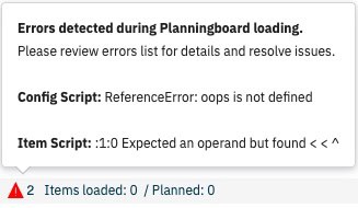Planningboard now reports errors just like Gantt and Risksheet. If a customization script fails, admins see a warning icon with detailed tooltips in edit mode (line number, root cause). Debugging is faster and safer, while end-users get a clean fallback view.