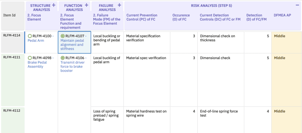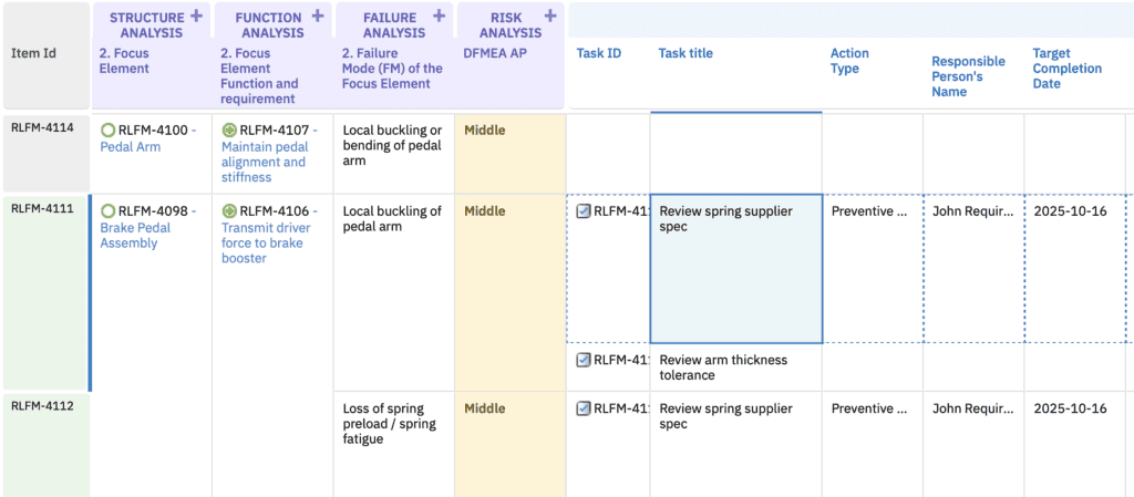 Each Risk Record in Polarion represents a single FMEA line (i.e., one row of the FMEA form):