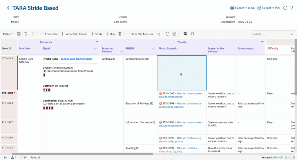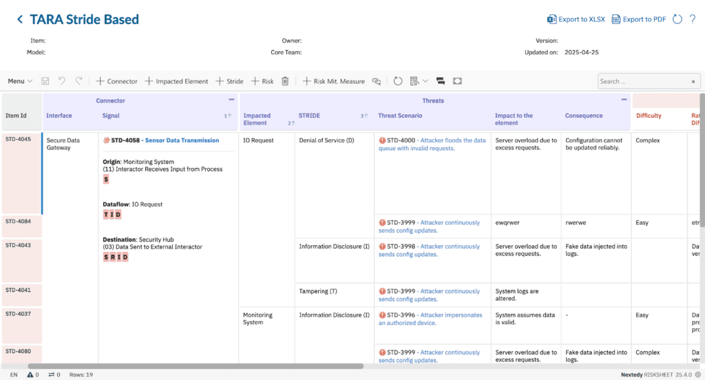 👉 Nextedy RISKSHEET brings cybersecurity risk management out of isolated spreadsheets and into your ALM system, uniting TARA with requirements, safety, and compliance. Because in connected, safety-critical systems, security is safety.