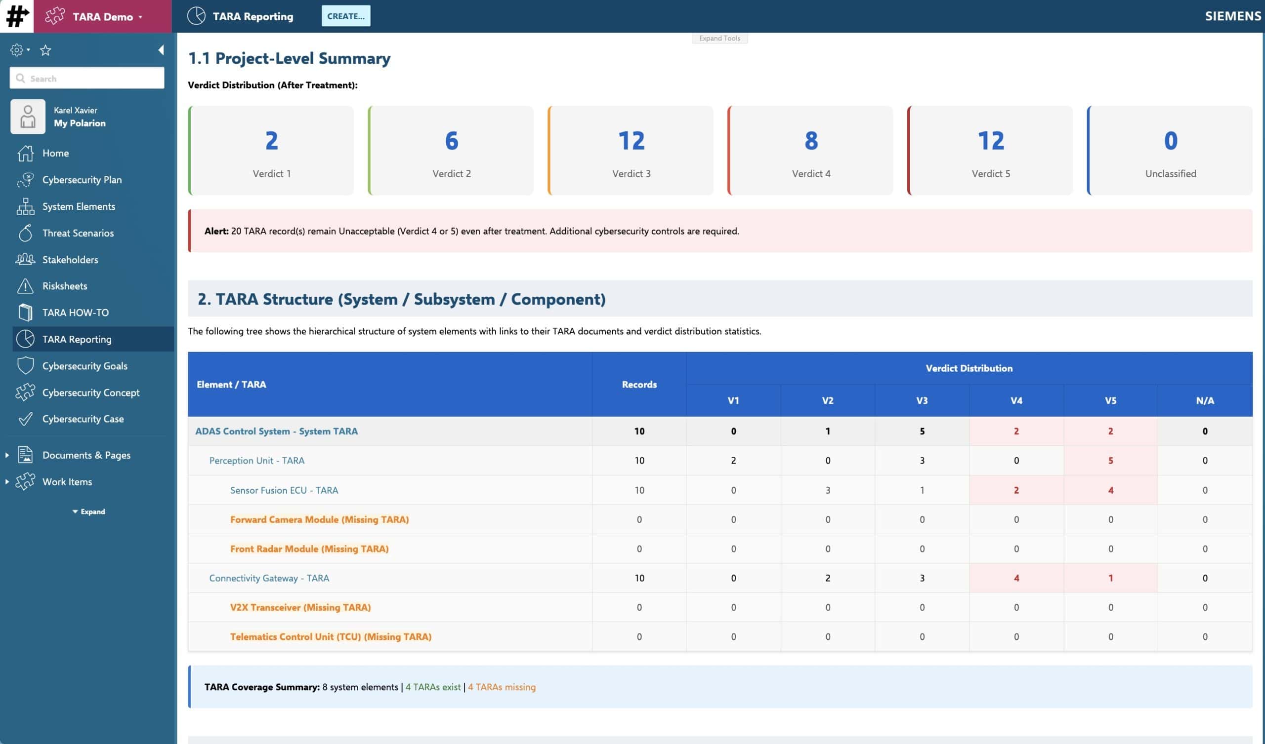 The complete TARA template — four modules, linked catalogs, automated scoring, traceability to requirements and test cases — ready to deploy.